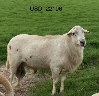 Another proven ram with an excellent combination of maternal traits and parasite resistance. This ram has over 50 progeny in 3 flocks: Georgia, Alabama and Arkansas. Structurally correct with good muscling, USD 22196 has passed on these traits to his offspring.