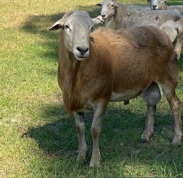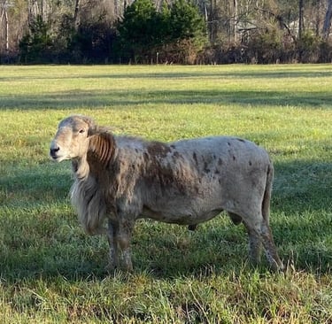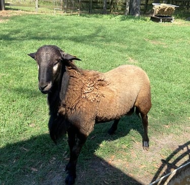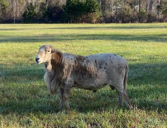 We purchased this high performing ram at the SWAREC Ram Test in 2024 from Randal and Rebecca Beal. New to NSIP, we took a chance on this stud ram and expect that his offspring will reflect the growth and parasite resistance he recorded while at the VT Ram test.